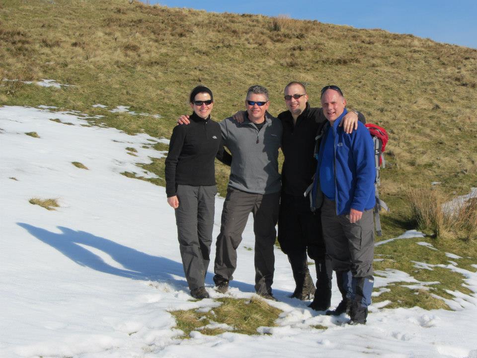 A return viDSCF0532sit to Pen-Y-Ghent today this time with Paul and Debbie too. A cool, still morning fooled us into wrapping up in multiple layers but as soon as we got working up the inclines we quickly warmed up. Off came the coats and thick fleeces to be left with just base layers or micro fleeces with zips down and sleeves rolled up. Whilst the peaks are still wearing plenty of snow it did feel like some spring weather might be making an appearance at last.